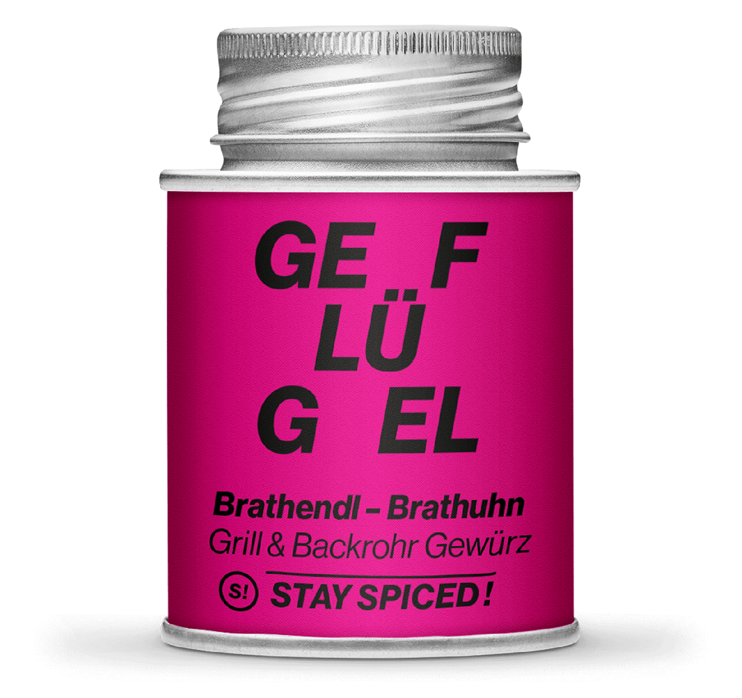 Die kräftige Brathendl Gewürzmischung von STAY SPICED ! macht sich besonders gut, wenn du das Brathuhn damit innen und außen würzt. Aber auch als Marinaden-Basis ist das Hendlgewürz wunderbar geeignet, um anschließend Chicken Wings oder Hühnchen-Keulen darin zu marinieren. Anschließend wird das Brathuhn entweder am Grill, in der Pfanne oder im Backrohr knusprig zubereitet.