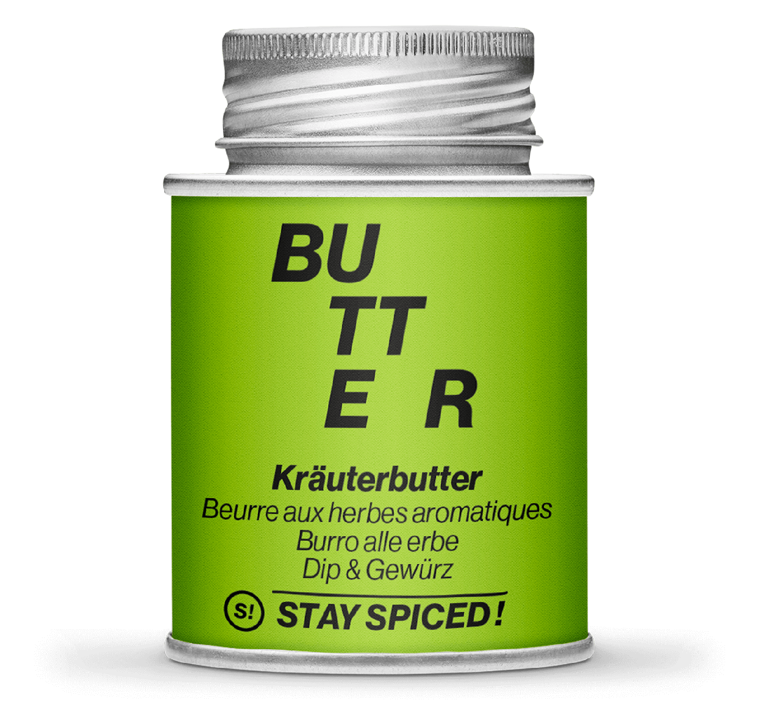 Mit dem STAY SPICED ! Kräuterbutter Dip & Streugewürz zauberst du nicht nur im Rührbesenumdrehen eine wunderbar würzige Kräuterbutter – und das ganz ohne Kräutersuchen und Kräuterhacken. Die Gewürzmischung harmoniert auch hervorragend mit Dips, Aufstrichen, Marinaden, (Grill-)Gemüse, Hühnchen und Meeresfrüchten.
