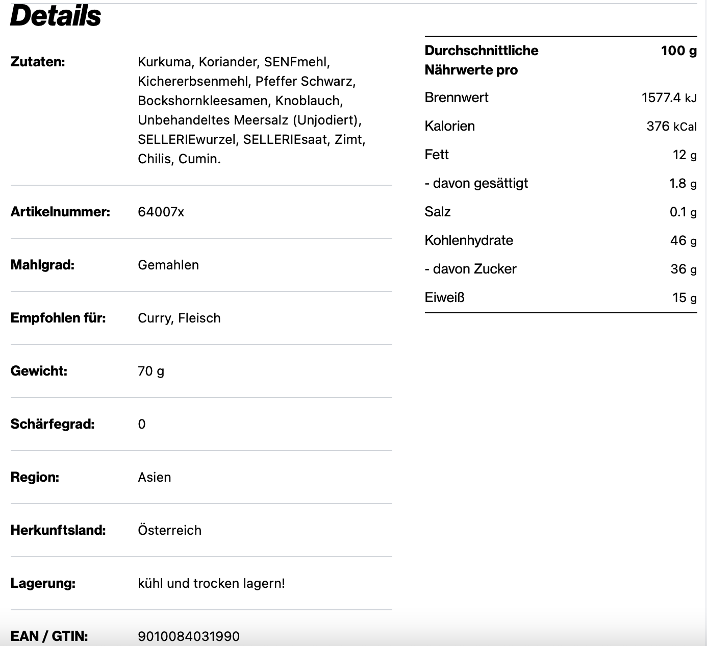 Dieser würzige Curry hat eine milde, harmonische Schärfe und passt ausgezeichnet zu Reis, Fleischbrühe, Geflügel, Schaschlik und Fisch.