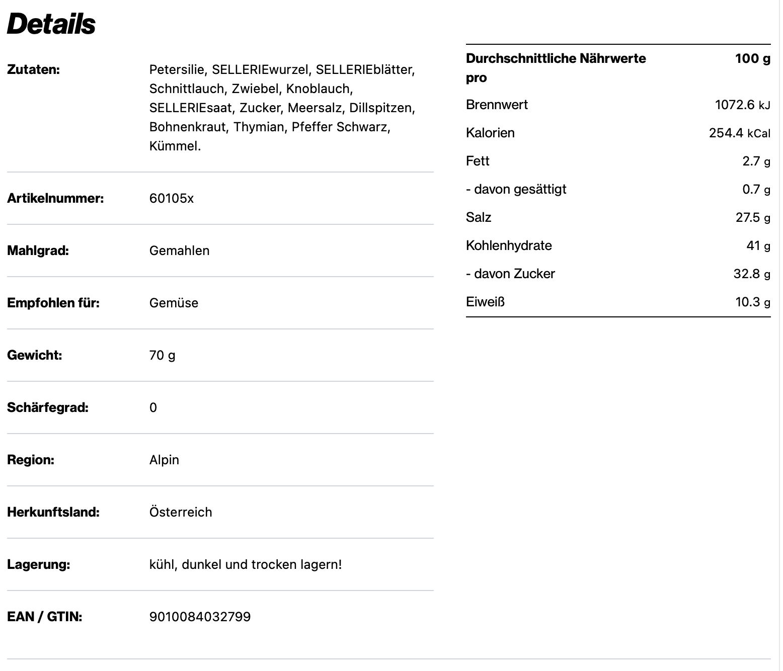 Die ideale Salatmischung zum Würzen von Suppen, Dips und Fleischsaucen. Auch super für Fisch, Gemüse, Huhn, Kalb, Pizza und Pasta geeignet.