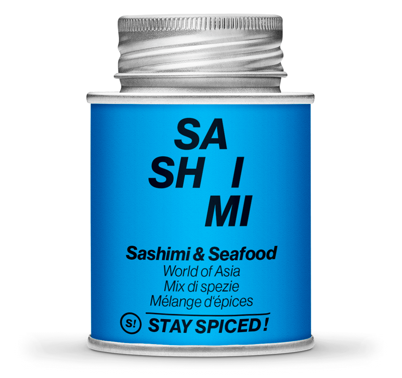 Fisch und Meeresfrüchte roh zuzubereiten, ist eine absolute Spezialität der japanischen Küche. Dort wie auch in unseren Breitengraden ist die Delikatesse als „Sashimi“ bekannt – und STAY SPICED! hat dem kulinarischen Kulturgut Japans dieses Gewürz gewidmet. Hier sind die besten Zutaten für Sashimi in einer einzigen Gewürzmischung vereint.