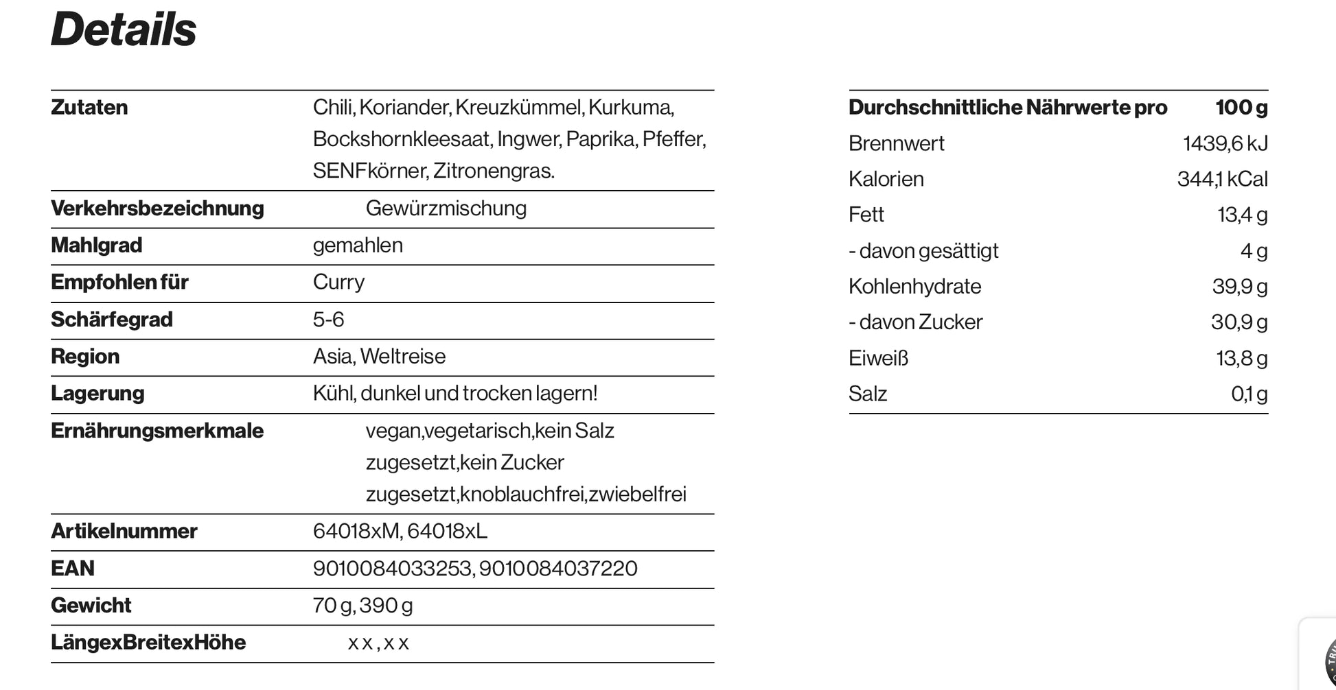 Hier handelt es sich wie bei allen unsererCurrysorten um jene, dieausschließlichaus hochwertigen, frisch vermahlenen Gewürzen bestehen. Fruchtpulver ist hier keines enthalten, weshalb die Temperatur sehr hoch sein darf, ohne dass Geschmack verloren geht!